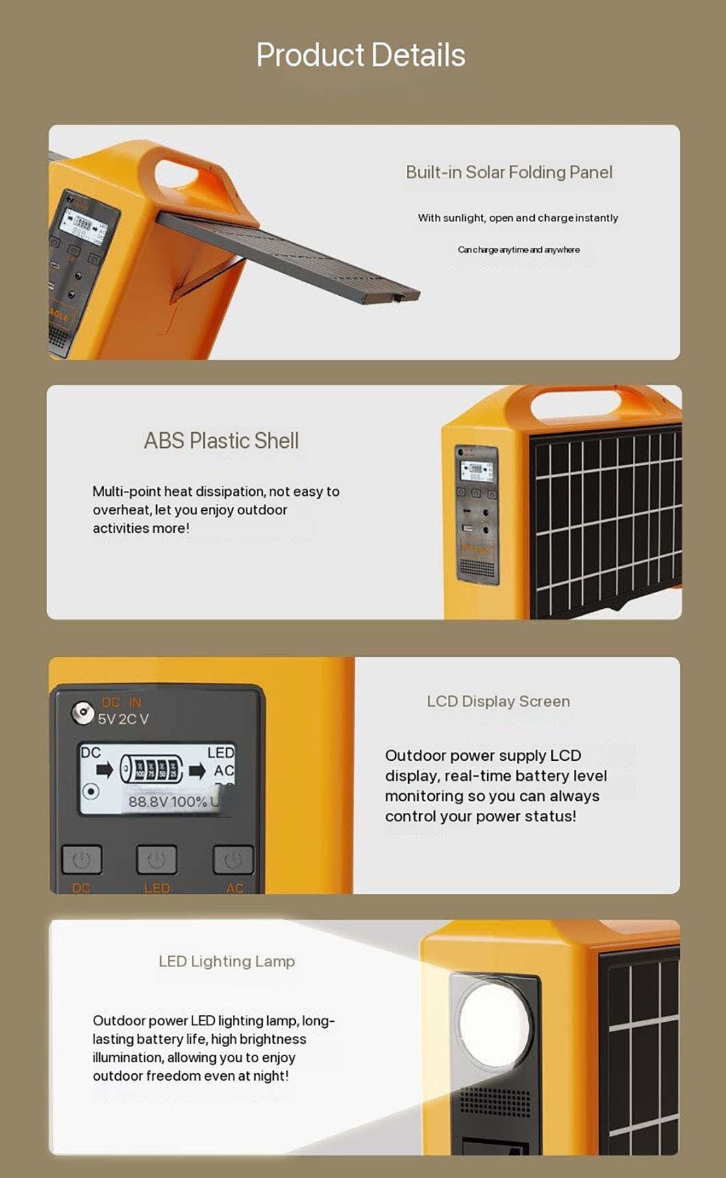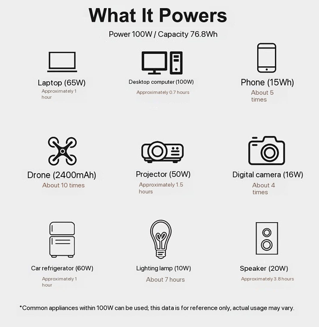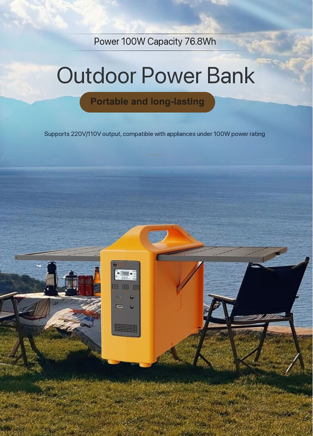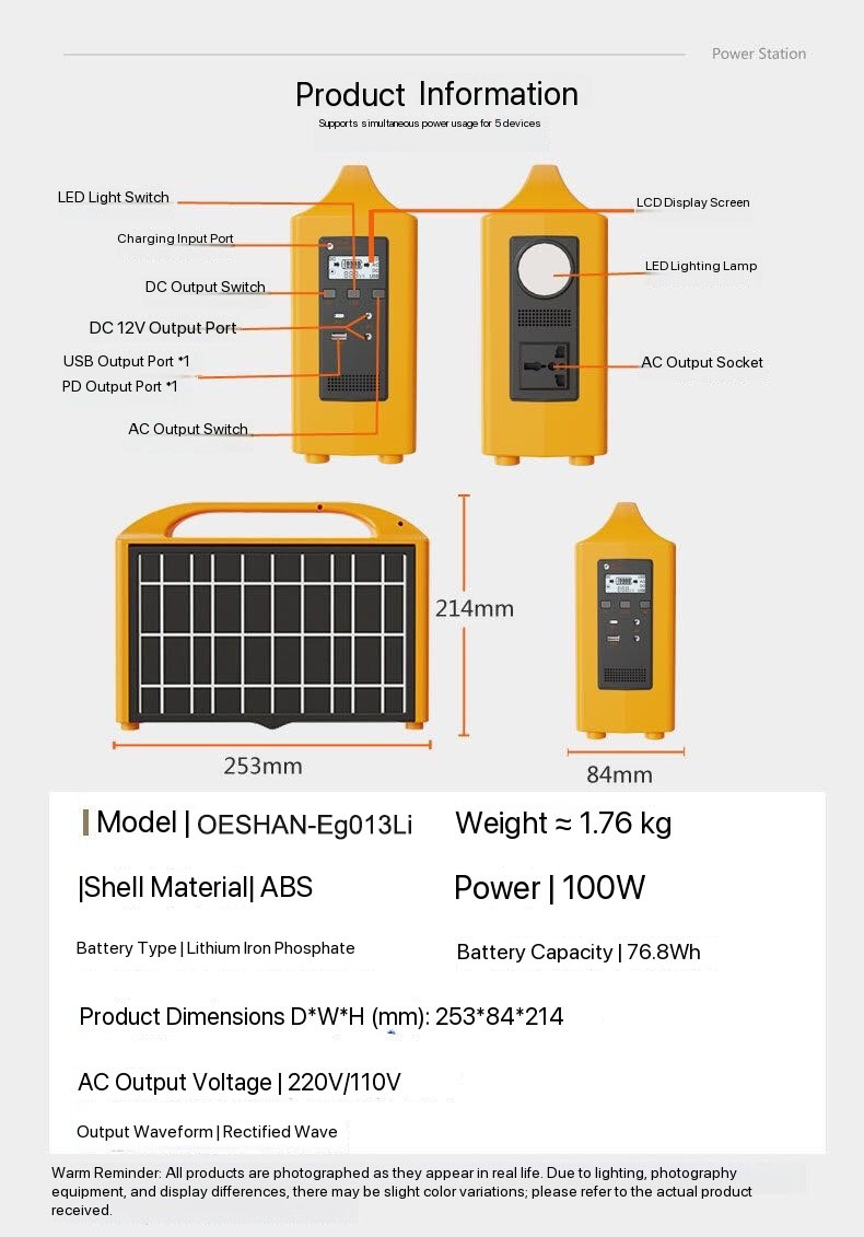 100W Outdoor Solar Power Storage Lighting Drones Portable Mobile Power Bank 110V/220V