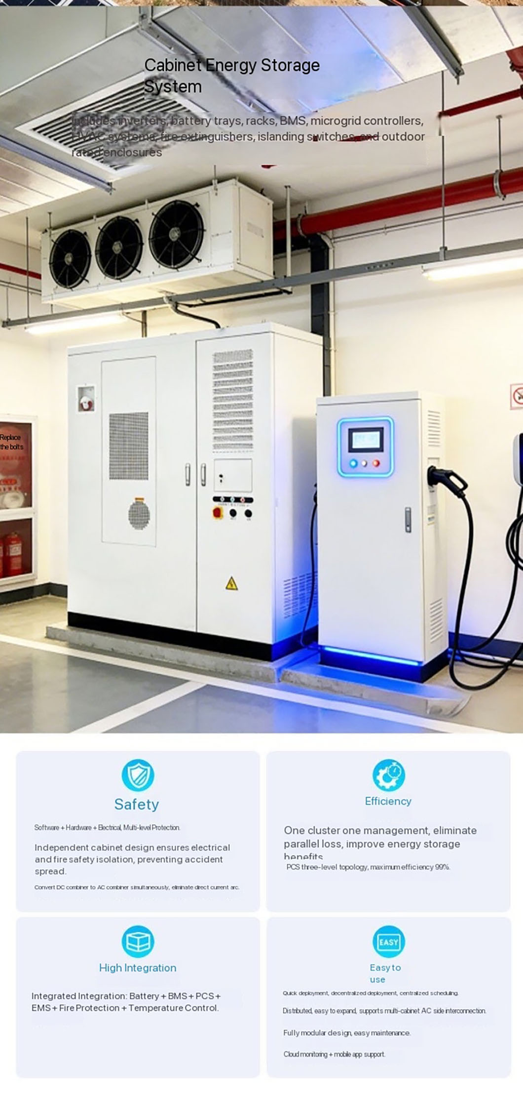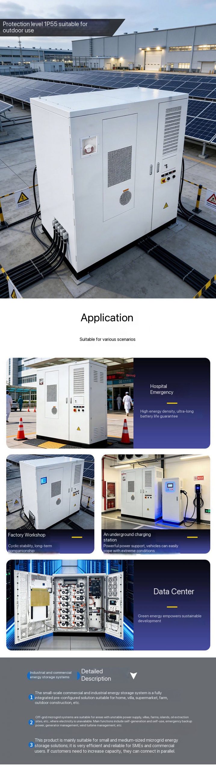 The energy storage system provides users with peak cutting and valley filling mode and stable power quality management.Egine electrochemical energy storage products have been successfully applied to large-scale industrial and commercial and residential fields,and expanded to communication base station backup,UPS backup,Island microgrid,optical storage and charging intelligent charging station and other emerging applications,to achieve electricity coverage,reduce social electricity costs,imporve the user side power security,maximize the use of energy to achieve social and economic benefits.