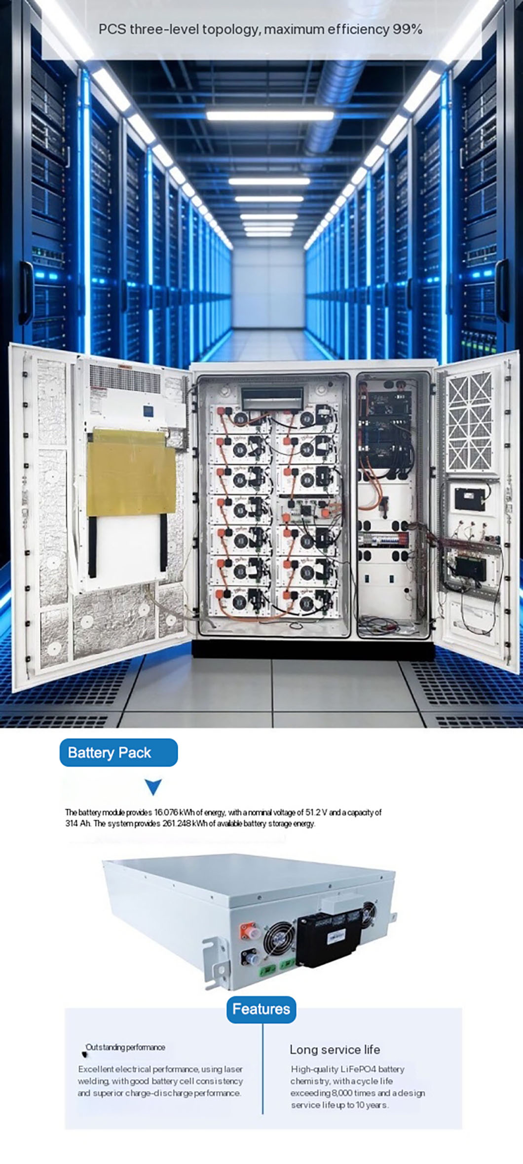 Custom 261kWh Commercial and Industrial Energy Storage System Solar Photovoltaic Lithium Iron Phosphate Battery Commercial Energy Storage Cabinet
